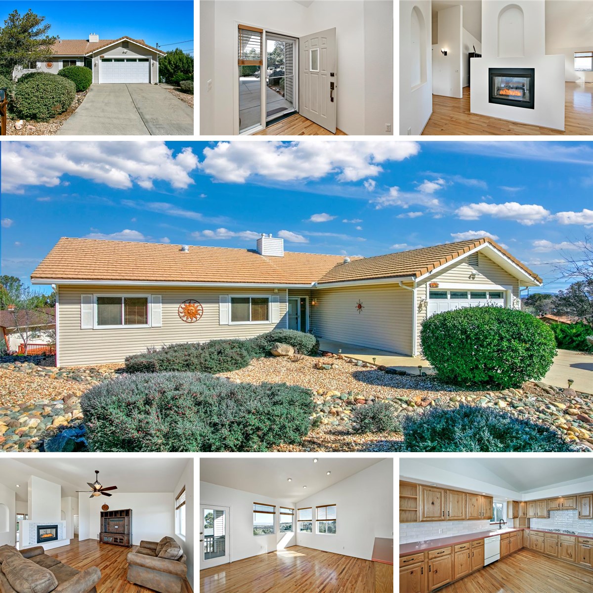 Views await you at this wonderful single level home! Light and bright with an open floor plan, vaulted ceilings, wood floors and picture windows to capture the beautiful views of Northern Arizona. The spacious great room is anchored by a double sided gas fireplace that provides the perfect ambience on a winter evening. The dining area is generously sized and shares in the great views. The kitchen is well appointed with lots of cabinetry, Silestone quartz countertops, gas cooktop & a wall oven. The primary bedroom has a walk-in closet, access to the deck and more great views. Both bathrooms have been updated with Silestone quartz countertops. A large covered deck spans the back of the home and will surly become your favorite spot to sip coffee, enjoy the wildlife and take in the amazing views. Its low maintenance features and convenient location make this home a must see. An unfinished basement provides tons of storage (or the opportunity for a future added living space).