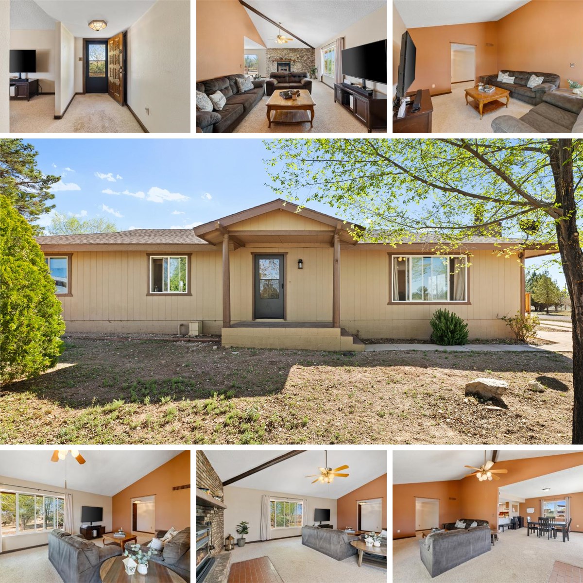 Take advantage of a VA assumable loan with this 9.79 acre property made up of two combined parcels. This 3-bedroom, 2-bath home sits on a knoll with wide mountain views and plenty of space for privacy. The living room features a vaulted ceiling with an exposed beam and a wood-burning fireplace with beautiful brick surround. Recent updates include a new HVAC system, new hot water heater, newer roofs on both the home and the detached three-car garage, which also includes a workshop, a workbench space, and tons of storage. The home is set back about a quarter mile from the road, with a gated gravel driveway. The property includes a mix of mature trees, including large pines, that surround the home offer exceptional privacy and tranquility. A concrete and block patio with redwood railing off the dining area offers the perfect vantage point for enjoying stunning western sunsets. Additional features include a well house with newly upgraded well pump, chicken coop, and greenhouse. The property is fenced and cross-fenced, with a separate enclosed yard suitable for farm animals. For those with livestock or horses, a red barn with four stalls, hay storage, and a tack room is also included.There's even a large covered RV parking structure. Two RV hookups are available--one with 30-amp power, water, and sewer, and a second with 30-amp power and nearby water. With endless possibilities and room to personalize, this unique property invites you to create your ideal lifestyle while enjoying the peace and beauty it provides. Schedule a tour today! Parcels 304-01-032A and 304-01-032B are included in the sale.